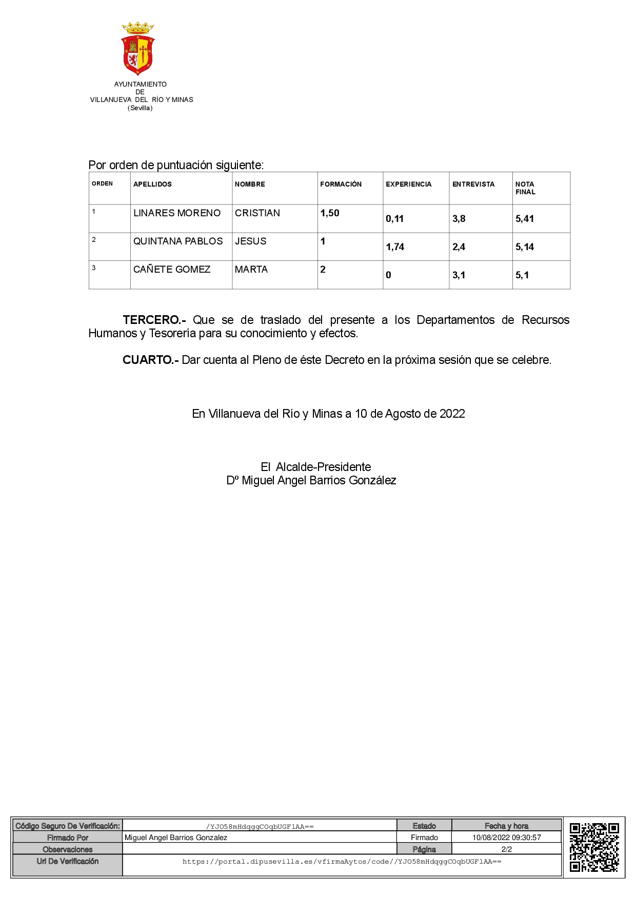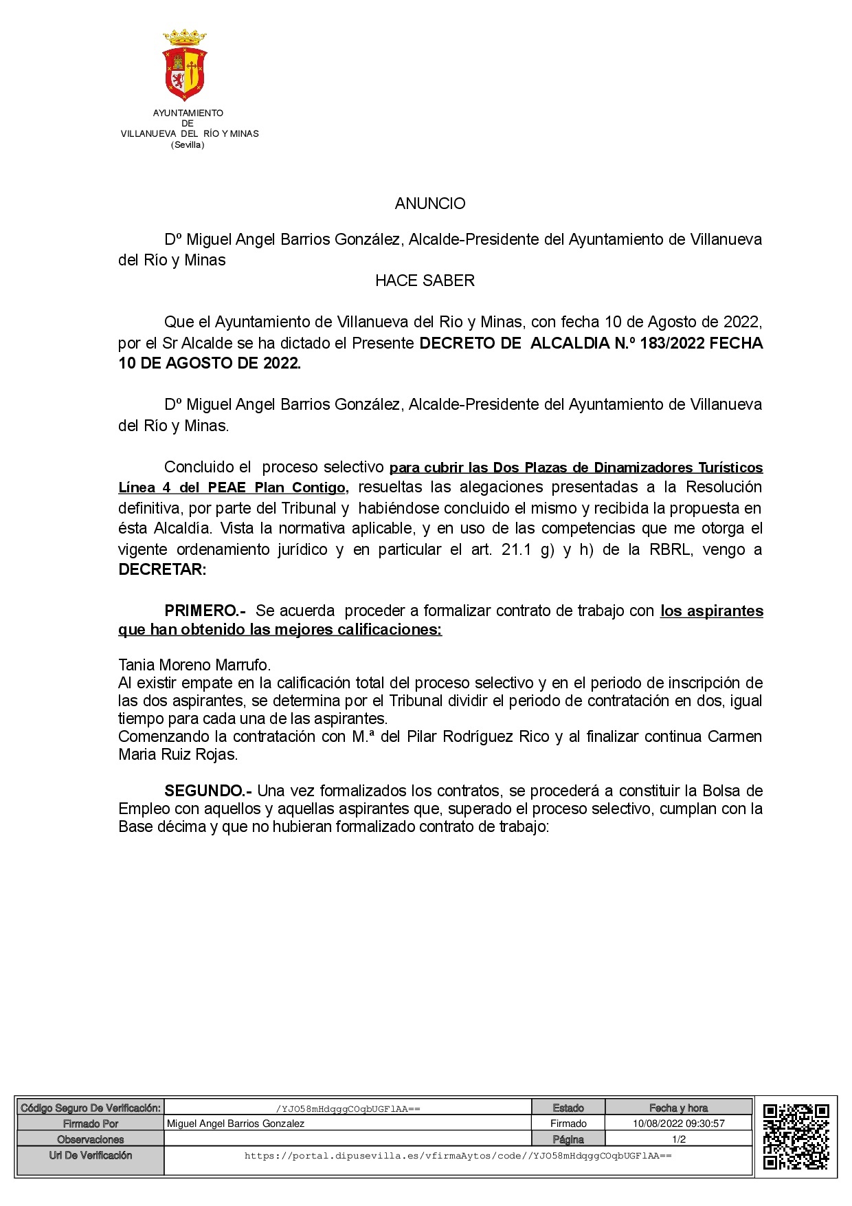 Activididades empresas Villanueva del Río y Minas